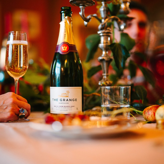 Like Champagne, the wines at The Grange are all made from three grapes. The red Pinot Noir and Pinot Meunier and the white Chardonnay. The White from Black from the excellent 2020 vintage is made entirely from Pinot Meunier. In Champagne, you'll find Meunier is grown mostly in the Vallee de la Marne. We love wines made with just Meunier and it's great to find an English vineyard providing a focus on the grape which tends to produce a more aromatic, fruiter style of fizz and this is a beautiful example.
